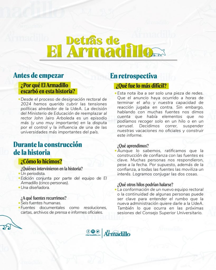 En el primer semestre de 2024 el Consejo Superior de la Universidad de Antioquia designó para un tercer periodo como rector a John Jairo Arboleda Céspedes. Aunque los problemas financieros que enfrentaba la institución fueron uno de los aspectos centrales en los debates entre las personas que aspiraban a ese cargo, Arboleda evadió los cuestionamientos sobre su gestión y, en diferentes escenarios, trató de reducir las dimensiones del problema.