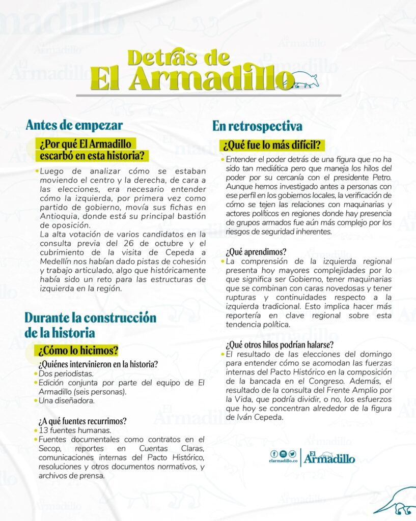 Una fuente de la campaña contó bajo reserva que creen que detrás de ese resultado hubo maquinarias locales y hasta sospechan de una posible compra de votos. Estrada lo ha negado al ser confrontada en el partido. Frente a la pregunta de El Armadillo, la candidata negó ser cercana a Llinás y aseguró que sus votos se deben “a una trayectoria como líder social y campesina” y a haber trabajado en esa región y en otras como Urabá y el Suroeste durante las campañas de Petro en 2018 y 2022.