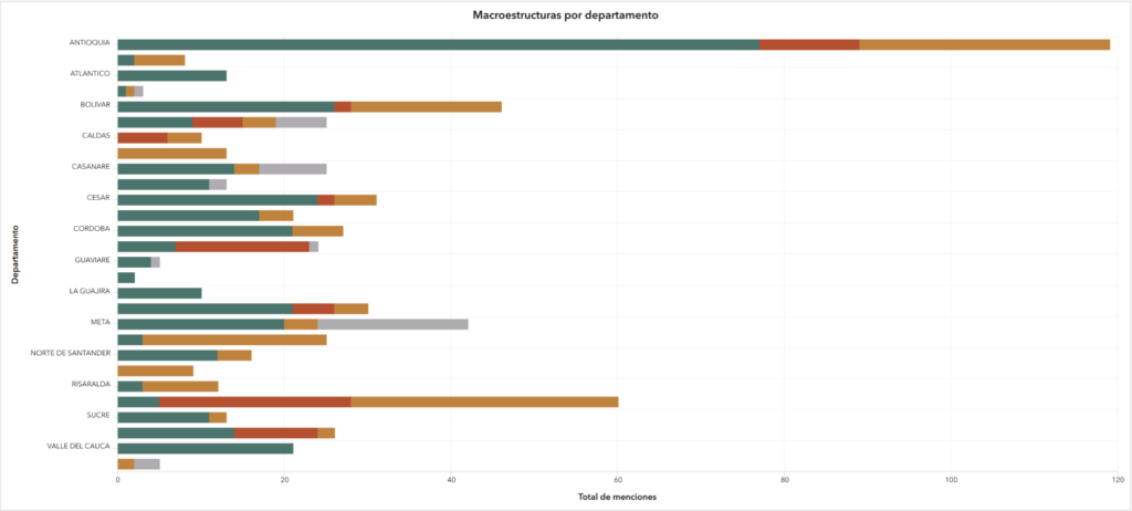 Antioquia fue uno de los departamentos de mayor expansión paramilitar. El geoportal del Centro Nacional de Memoria Histórica (CNMH) muestra que en el departamento fue donde se concentraron más expresiones de tres macroestructuras paramilitares (Autodefensas Campesinas de Córdoba y Urabá, Bloque Central Bolívar y Autodefensas Campesinas del Magdalena Medio).